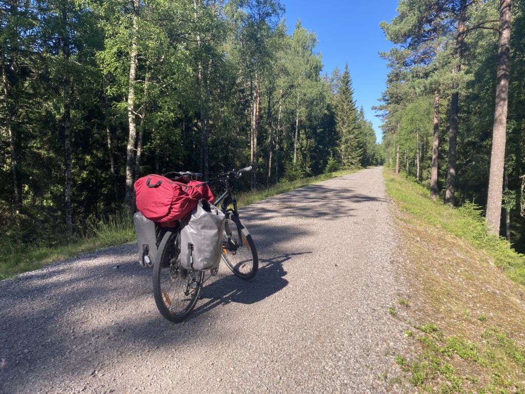 En: The owner of the gas station, when he saw Kolubryna, started asking about my route and the purpose of my trip because, as it turns out, he also enjoys solo cycling, searching for his own Panama. This year, he plans to cycle around Sweden’s largest lake, Vänern (almost three times the size of Vättern). Wow, that sounds like an amazing adventure.