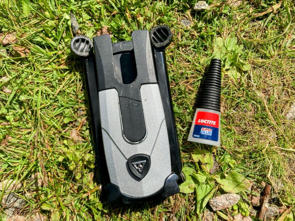 En: I arrive in Borås and manage to buy some super glue at a gas station. Maybe I’ll be able to temporarily fix the kickstand?