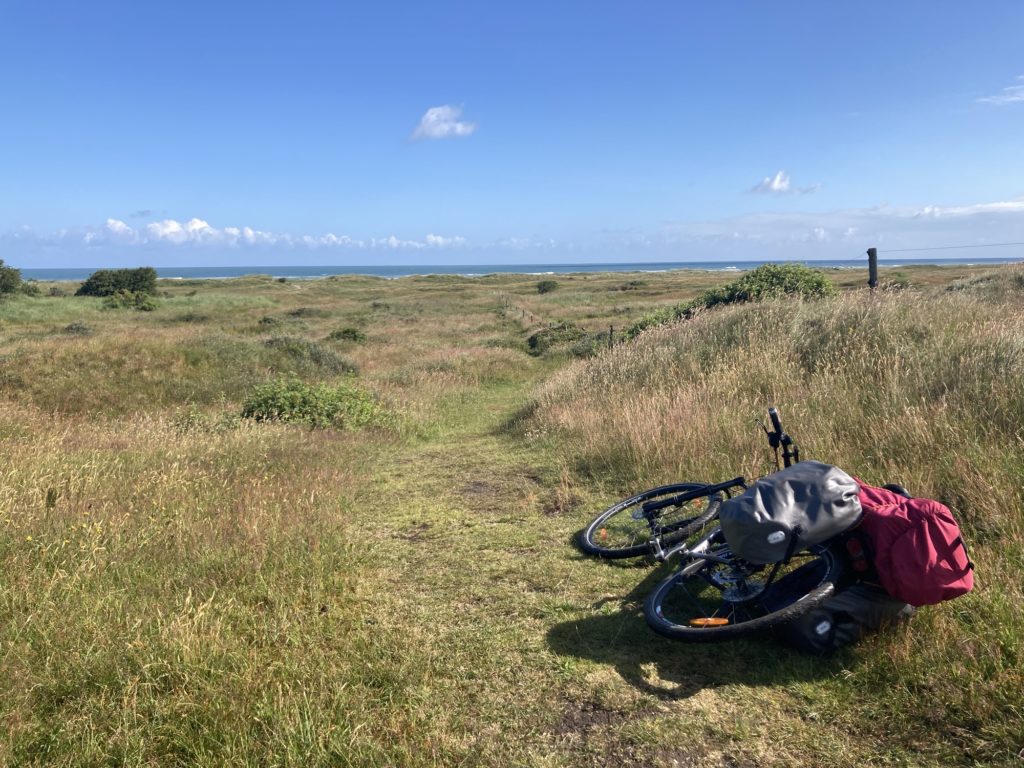 Było dziś sporo szutru, trawy i kamieni. Duża część trasy biegła nad morzem, które raz było bliżej a raz dalej drogi, którą jechałem. Co ciekawe, mimo że to zachodni brzeg Danii, to jest to wciąż Morze Bałtyckie, a konkretnie cieśnina Skagerrak (jedna z Cieśnin Duńskich, łączących Morze Bałtyckie z Morzem Północnym).