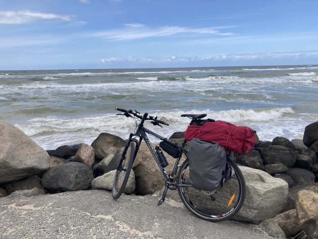 En: Today, there was a lot of gravel, grass, and stones. Much of the route ran along the sea, which was sometimes closer and sometimes farther from the road I was on. Interestingly, although this is the western coast of Denmark, it is still the Baltic Sea, specifically the Skagerrak Strait (one of the Danish Straits connecting the Baltic Sea with the North Sea).