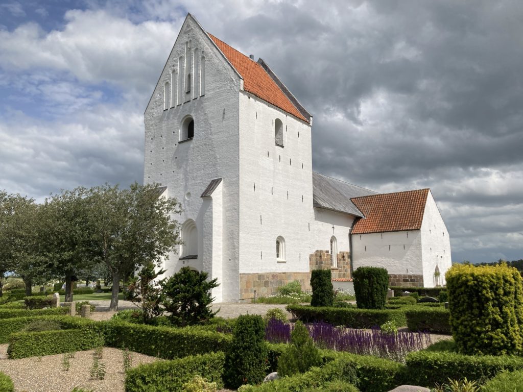 Kilkanaście kilometrów przez Blokhus widzę przy drodze kościół w stylu romańskim, nie pierwszy zresztą taki na tej trasie. Zjeżdżam na parking i robię spacer wokół kościoła.