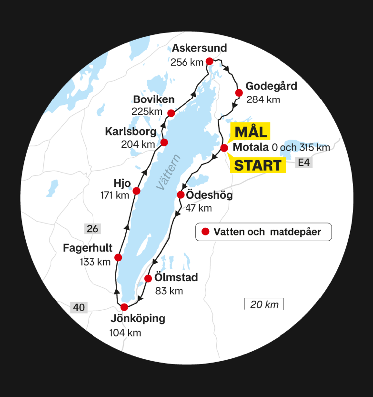 Wzdłuż trasy organizatorzy ustawili 10 depotów (punktów z jedzeniem, wodą, lekarzem, serwisem rowerowym). Pierwszy depot na 47 kilometrze ominąłem, bo nie byłem jeszcze zmęczony i dobrze mi się jechało z grupą. Myślałem że ominę też następny, ale zaczynałem czuć zmęczenie, a moja grupa praktycznie się rozpadła, więc zjechałem na 83 kilometrze w miejscowości Ölmstad. Uznałem że pora wypróbować żel energetyczny, których zapas wiozłem ze sobą. Na szczęście saszetka była mała, bo żel w smaku był okropny i przyprawił mnie o mdłości. Postanowiłem, że słodkie bułeczki i kawa, które serwowano na postoju będą lepszym wyborem. Od tamtej pory ładowałem nimi akumulatory na każdym postoju.