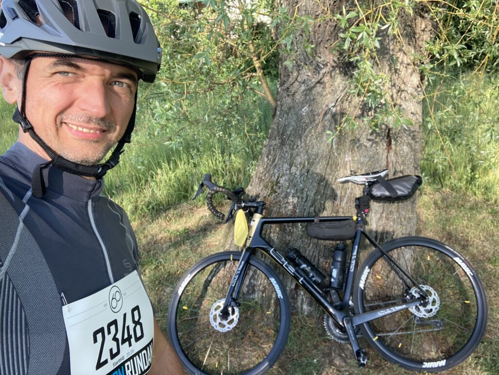 Nigdy wcześniej nie jeździłem na szosówce, ani nie brałem udziału w wyścigu rowerowym, więc bylem pełen obaw. Najdłuższa trasa rowerowa, 240 km z Warszawy do Torunia, zajęła mi około 20 godzin. Tyle że była to trasa krajoznawcza, z postojami na zdjęcia. Był nawet jeden postój na drzemkę 🙂