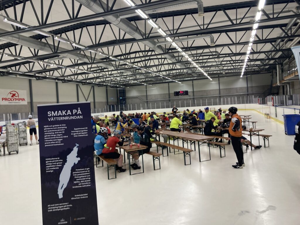 Trzy z dziesięciu depotów serwowały ciepłe posiłki. Planowałem przerwy w taki sposób, żeby się w nich zatrzymać. W Jönköping (postój na 104 kilometrze) były to kötbullar (po polsku klopsiki z Ikei) z musem ziemniaczanym i żurawiną. W miejscowości Hjo (postój na 171 kilometrze) – lazania. Po dojechaniu na metę w Motali serwowano też burgery. W każdym przypadku przygotowano wersje dla wegetarian, wegan, jaki i kolarzy posiadających różne alergie.